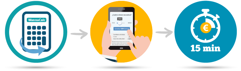 Para acceder a un crédito rápido, acude a la calculadora sobreimpresionada e indica el dinero que quieres, en qué plazo lo vas a devolver, dale a solicitar ¡y empieza la cuenta atrás para tener tu dinero en 15 minutos!