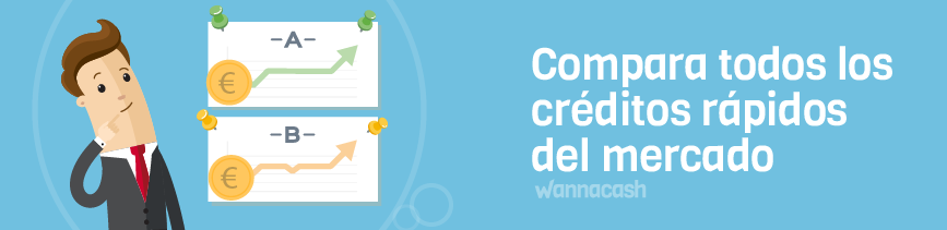 Sin embargo, en WannaCash también disponemos de un comparador de préstamos rápidos en el que se encuentran todos los créditos y préstamos rápidos del mercado. De esta manera podrás hacer una comparativa todavía más completa y tomar la decisión adecuada sobre qué préstamo se adapta mejor a tus condiciones y necesidades en ese momento.
